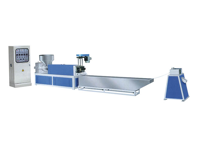 本機適用於HDPE、LDPE、PP等廢塑料再生造粒,該機配(pèi)置快速電動換濾網裝置,自動溫度控製,切粒機采用調速電機與擠出(chū)機出料速度與之同步切粒,該(gāi)機組產量高,性能穩定,操作方便,經濟(jì)效益好。